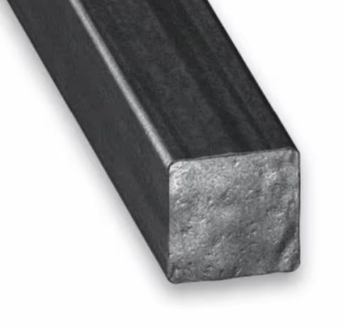 1018 steel has ~0.18% carbon, providing tensile strength of ~440 MPa and yield of ~275 MPa. 1045 (~0.45% carbon) provides ~640 MPa tensile and ~410 MPa yield. 4140 (Cr– and Mo-alloyed) provides better performance: ~775 MPa tensile, ~620 MPa yield. Elongation is 12–20%. Square bars are weldable, heat-treatable for greater hardness and impact resistance, and machineable. Cold-finished bars provide better dimensional control and strength retention.
